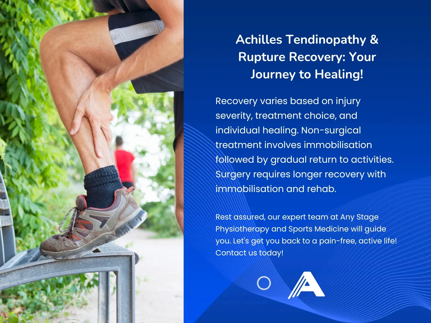 Recovery varies depending on several factors, including the severity of the rupture, the chosen treatment approach, and individual healing capabilities. Non-surgical treatment may involve several weeks of immobilisation followed by a gradual return to weight-bearing and physiotherapy. Surgical repair typically requires a longer recovery period, with immobilisation in a cast or boot for several weeks and a more extensive rehabilitation program.